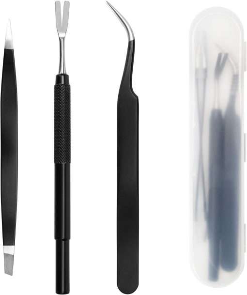COITEK 3 in 1 Tick Remover Kit, Black Tick Remover Tweezers Stainless Steel Tick Remover Tools Set for Pet Dog, Cat, Human with Storage Box (Black)