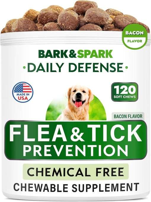 Natural Flea and Tick Prevention Chews for Dogs – Chewable Tablets for Dogs – All Breeds and Ages – Made in USA Flea and Tick Remover Supplement – Bacon – 120 Treats