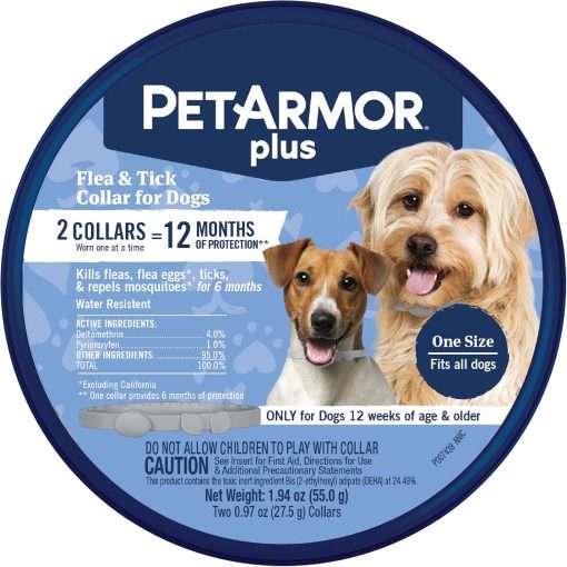 PetArmor Plus Flea & Tick Collar for Dogs, Kills Fleas & Ticks, Long Lasting Protection for 12 Months, Water Resistant, One Size Fits All, 2 Collars